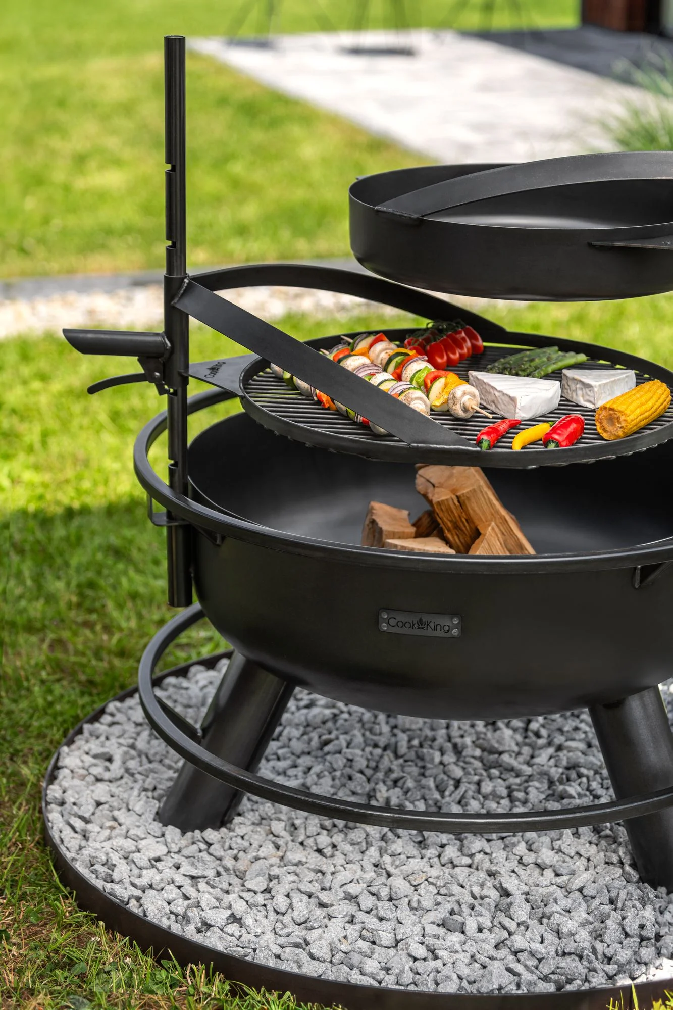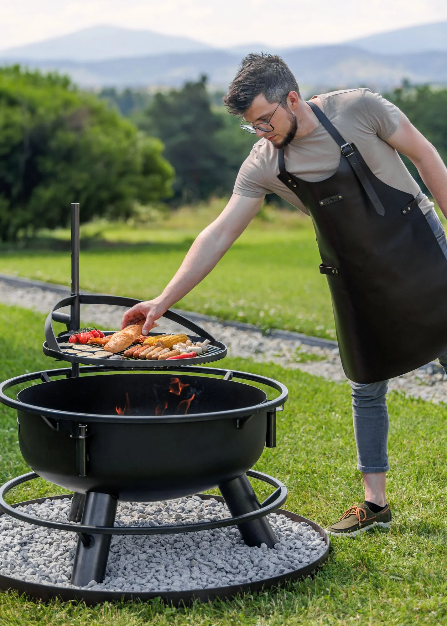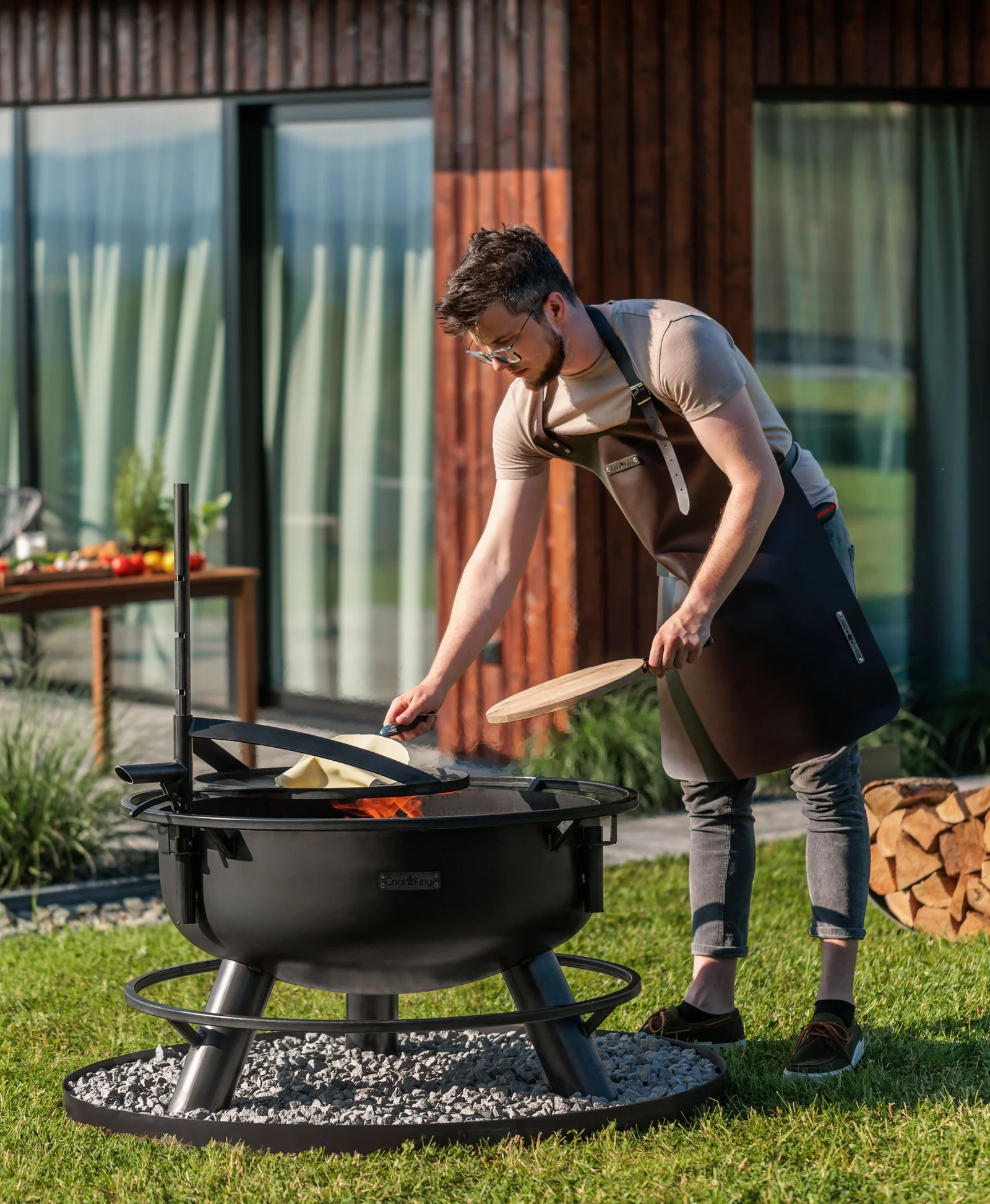 Forestil dig et køkken, der kan flyttes ud i haven, på terrassen eller andre steder i det fri. Cook King BANDITO Premium Outdoor Fireplace er præcis sådan en alsidig løsning, der kombinerer et traditionelt bål, en professionel grill og et hyggeligt belysningselement. Dette europæiske håndlavede mesterværk, der vejer 26 kg, er skabt til dem, der ikke kun værdsætter kvaliteten af madlavningen, men også sikkerhed og funktionalitet.