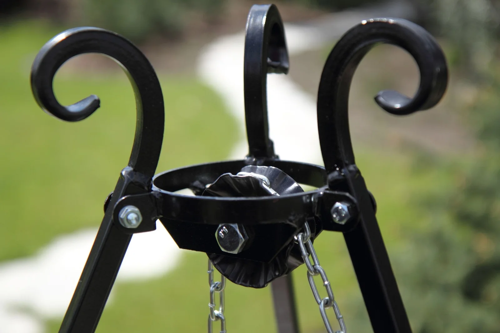 Imponerende dekorationer, herunder smedede elementer, gør denne stativgrill til en fornøjelse for øjet.